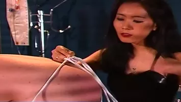 Vidéo porno : La vidéo commence par une femme mûre et brune attachée à un pieu. Elle est vêtue d'un corset en cuir noir et de bas résille assortis. Ses yeux sont bandés, et elle semble avoir peur. Un homme s'approche d'elle, portant également un corset en cuir noir et des bottes montantes. Il la regarde fixement, avec un air menaçant. Il commence à toucher son corps doucement, caressant ses seins et son ventre. Elle gémit de plaisir, mais aussi de peur. Il lui donne des fessées sur les fesses, puis passe sa langue sur ses plaies encore rouges. Elle gémit encore plus fort cette fois-ci, sentant le mélange de douleur et de plaisir qui envahit tout son être. Ensuite, il sort son gros pénis et commence à le frotter contre sa chatte humide. Elle gémit bruyamment, ne pouvant pas contrôler ses réactions face à tant de stimulation. Il pénètre alors brutalement sa chatte sans aucune préparation, la faisant crier de douleur mélangée à du plaisir intense. Il continue à la pénétrer sans relâche, variant les rythmes pour qu'elle soit toujours aussi excitée. Elle se débat contre les cordes qui la retiennent, mais elle n'arrive pas à se libérer. Elle gémit encore plus fort lorsqu'il jou
