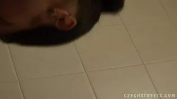 VIDÉO PORNO : Coquine brune suce un inconnu dans les toilettes d'un resto