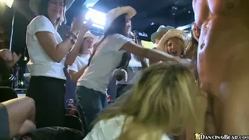 Invités pour faire du strip, il se fait pomper le dard et va baiser ces meufs ordinaires