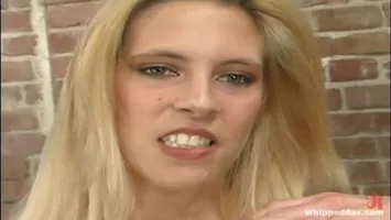 Vidéo porno : Quand une brune domine une blonde la vidéo ne peut qu'être bonne. Ce n'est pas la première fois que cette dominatrice reçoit cette soumise et elle la dompter comme il faut. Les mains attachées en l'air et un bâillon boule en bouche la soumise ne peut rien faire. Du coup sa maîtresse se lâche et commence par lui donner des coups de martinet mais elle préfère utilise sa baguette pour mieux viser. Pour voir si la femme dominée blonde prend du plaisir la dominatrice lui écartèle les lèvres de sa chatte et là elle peut remarquer que la soumise mouille.