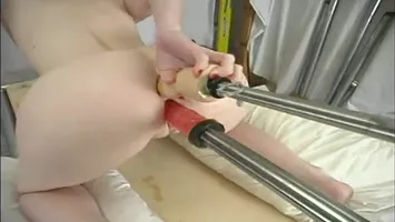 Cochonne blonde se fait défoncer les orifices par une fucking machine