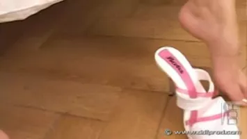 Blonde enlève sa culotte pour qu'on voit ses trous. Elle aime aussi montrer ses pieds