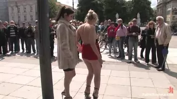 Vidéo porno : C'est en public que cette soumise se fait humilier par sa maîtresse qui la ligote le cul et les seins à l'air. Avec une cagoule sur le visage a soumise doit se promener en pleine ville. Un pervers va profiter de cette occasion pour se faire sucer et baiser cette femme dominée.