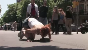 Vidéo porno : En pleine ville cette soumise se fait promener comme une chienne et boit dans une gamelle sous les yeux des passants. A quatre pattes la soumise continue sa promenade. La dominatrice lui accroche des pinces à linge aux tétons et lui tripote sa chatte avant de l'offrir à un mec qui abuse d'elle en public.