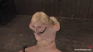 Vidéo porno : La jeune femme dominée blonde aime se faire maltraiter et son dominateur va en profiter un maximum. Il lui bloque les jambes dans des tubes d'acier et lui enfonce un écarteur buccale dans la bouche. Pendant qu'il lui donne des coups de martinet la soumise se fait stimuler son point g par un étalon à picots vibrants où sa chatte repose dessus. La soumise jubile mais elle prend son pied surtout lorsque son maître pervers lui accroche des pinces à linge aux tétons. Pour bien faire jouir sa soumise, le maître met la position maximale de l'appareil et là c'est l'extase pour cette femme dominée.