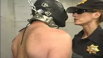 Vidéo porno : La gardienne a un homme en cellule et elle compte bien jouer avec lui en le prenant comme soumis. Il porte une cagoule intégrale en cuir et a les mains ligotées dans le dos. La maîtresse lui donne des coups de baguette puis de martinet pour lui faire du mal.