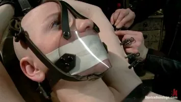Vidéo porno : Sanglée à une poutre le soumise porte un drôle de masque et elle ne peut plus faire un geste. Sa maîtresse en profite pour lui accrocher des petites pinces sur le corps et la douleur est omniprésente. Pour accentuer la domination la maîtresse lui pose un étalon en plastie à picots vibrants entre les jambes.
