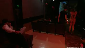 Vidéo porno : Dans une salle de cinéma cette soumise va passer un sale quart d'heure car elle va servir de défouloir à des pervers. Mains attachées dans le dos et seins ligotés la soumise est excitante alors elle doit sucer les bites en mode gorge profonde et se fait défoncer touts ses orifices par ces teubs.
