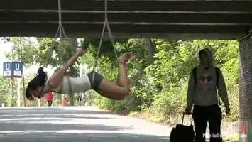 Vidéo porno : La femme dominée est ligotée à l'extérieur dans le vide sous un pont avec un bâillon boule en bouche. Le passant la regarde mais personne ne réagit. Sa dominatrice l'emmène ensuite en plein centre ville et elle est attachée à une barre d'étirement. Pour bien humilier cette femme dominée sa maîtresse lui fait des trous à ses vêtements pour faire apparaître ses parties. Des mecs s'intéressent à elle la salope va devoir les sucer et se faire baiser par eux. La sodomie va même se faire sodomiser pour enfoncer le clou. La dominatrice qui aime humilier publiquement sa soumise prend grave son pied.