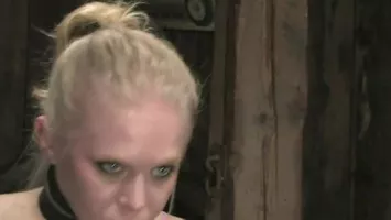 Vidéo porno : La femme dominée blonde est accroupie et a les bras bloqués dans le dos ce qui laisse tout le loisir à son maître de faire d'elle ce qu'il veut. Il lui tripote son minou et s'aperçoit que la coquine dominée mouille alors il prend son martinet et la frappe. Toujours attachée la soumise a un stimulateur électrique entre les jambes et elle jubile. Pour encore plus la faire souffrir le dominateur lui enfonce un gros crochet en acier dans son trou du cul et lui colle des ventouses à ses tétons pour bien les faire pointer. Le maître prend son pied en jouant avec cette soumise surtout lorsqu'il accroche des poids à ses tétons.