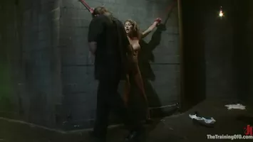 Vidéo porno : La soumise est attachée par les poignées et son dominateur lui arrache littéralement ses habits. Ensuite il prend son martinet et lui donne de grands coups, il faut dire que la grosse poitrine de cette femme dominée l'excite au plus haut point. Du coup il accroche des pinces à linge à ses seins. Pour bien immobiliser la soumise le maître la bloque dans un carcan et il continue de lui donner des coups de martinet. Pour lui offrir du plaisir sexuel il la fait chevaucher un étalon en plastique à picots vibrants et en même temps il donne encore des coups de martinet. Pour finir en beauté il lui tripote sa chatte avec un stimulateur électrique et là la soumise obtient une éjaculation féminine.