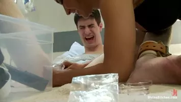 Vidéo porno : Alors que le mec est hospitalisé il va se faire dompter par une maîtresse. Son médecin se fait sucer sous ses yeux par cette dominatrice pervers et le soumis récolte une dilatation anale et une sodomie profonde. Les coups aux couille sont également de la partie et ce patient va très vite guérir.