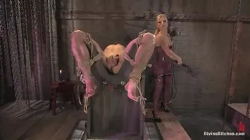 La blonde Kelly Wells se fait écarter la vulve et doigter l'anus lors de cette scène SM