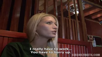 Une pétasse blonde sert de garage à bite lors d'un gangbang buccal, et finit arrosée de foutre