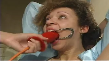 Vidéo porno : C'est dans un cabinet médical que cette pseudo infirmière va dompter sa nouvelle soumise. La femme dominée est sanglée et a la bouche autant écartée que ses cuisses. La dominatrice commence par lui donner de grandes claques en plein sur sa chatte et comme elle remarque que la soumise mouille elle lui enfonce un gode mais dans sa bouche. Pour humilier cette soumise hétérosexuelle la maîtresse perverse lui fait lécher ses pieds. Pour dominer cette femme dominée la maîtresse la fait mettre à quatre pattes et lui donne des coups de martinet sur le cul. Pour prendre son pied la dominatrice gouine équipe la soumise d'un bâillon gode et lui ordonne de la pénétrer.
