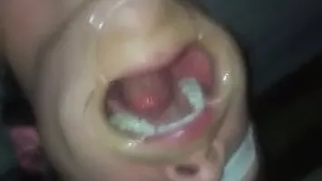 Petite japonaise s'amuse avec une bite pour se prendre le sperme au visage