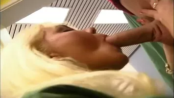 Truie blonde au gros cul se fait baiser la chatte et la bouche