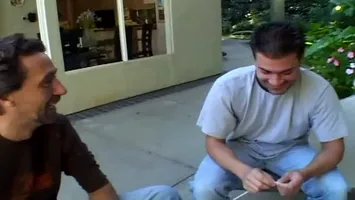 Japonaise sort le pénis du caleçon pour le masturber et gouter son sperme