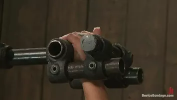 Pétasse en chaleur prend son pied avec des machines à niquer mécaniques