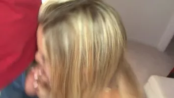 VIDÉO PORNO : Une coquine blonde à forte poitrine suce et avale