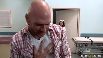 Vidéo porno : Une infirmière mûre et brune se met à genoux devant un patient dans une vidéo hardcore. Elle commence par déshabiller le jeune homme, exhibant son corps musclé et bien bâti. La brune sensuelle s'approche de sa virilité, la prenant en main avec une douceur trompeuse. Elle fait glisser lentement la peau sur son gland, faisant gonfler ce dernier. Le patient gémit de plaisir alors que l'infirmière continue de le branler vigoureusement. La fellation commence ensuite : elle engloutit tout le membre du patient sans rechigner, faisant des va-et-vient rapides avec sa bouche pour stimuler encore davantage son partenaire. Il est clair qu'elle prend plaisir à cette fellation intense, ses yeux sont rivés sur ceux du patient qui regarde intensément chaque mouvement de sa bouche autour de son pénis. L'actrice poursuit cette fellation passionnée, jouant avec sa langue et ses lèvres pour procurer au patient des sensations intenses. Ses mains caressent également les testicules du jeune homme, les massant doucement tout en continuant à sucer avidemment son membre raide comme fer. Le rythme s'accélère progressivement, les gémissements devenant plus forts et plus fréquents. Finalement, après avoir fait durer le plaisir pendant un long moment, l'infirmière sent